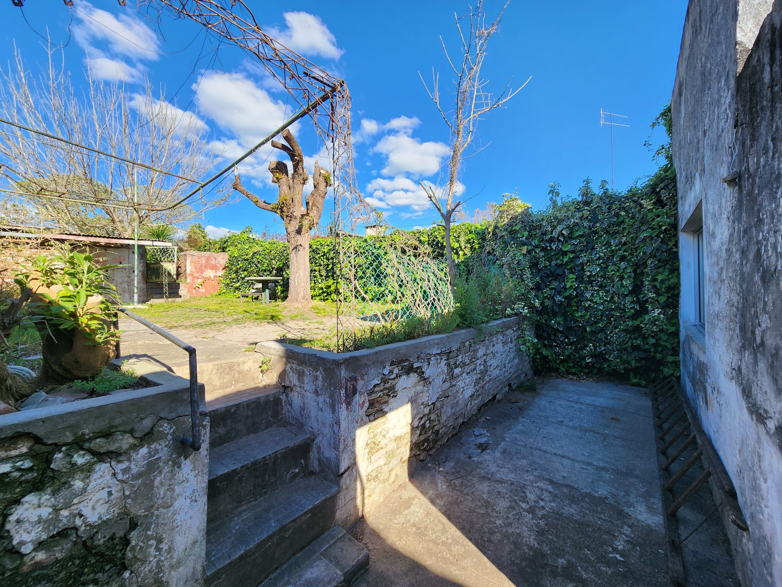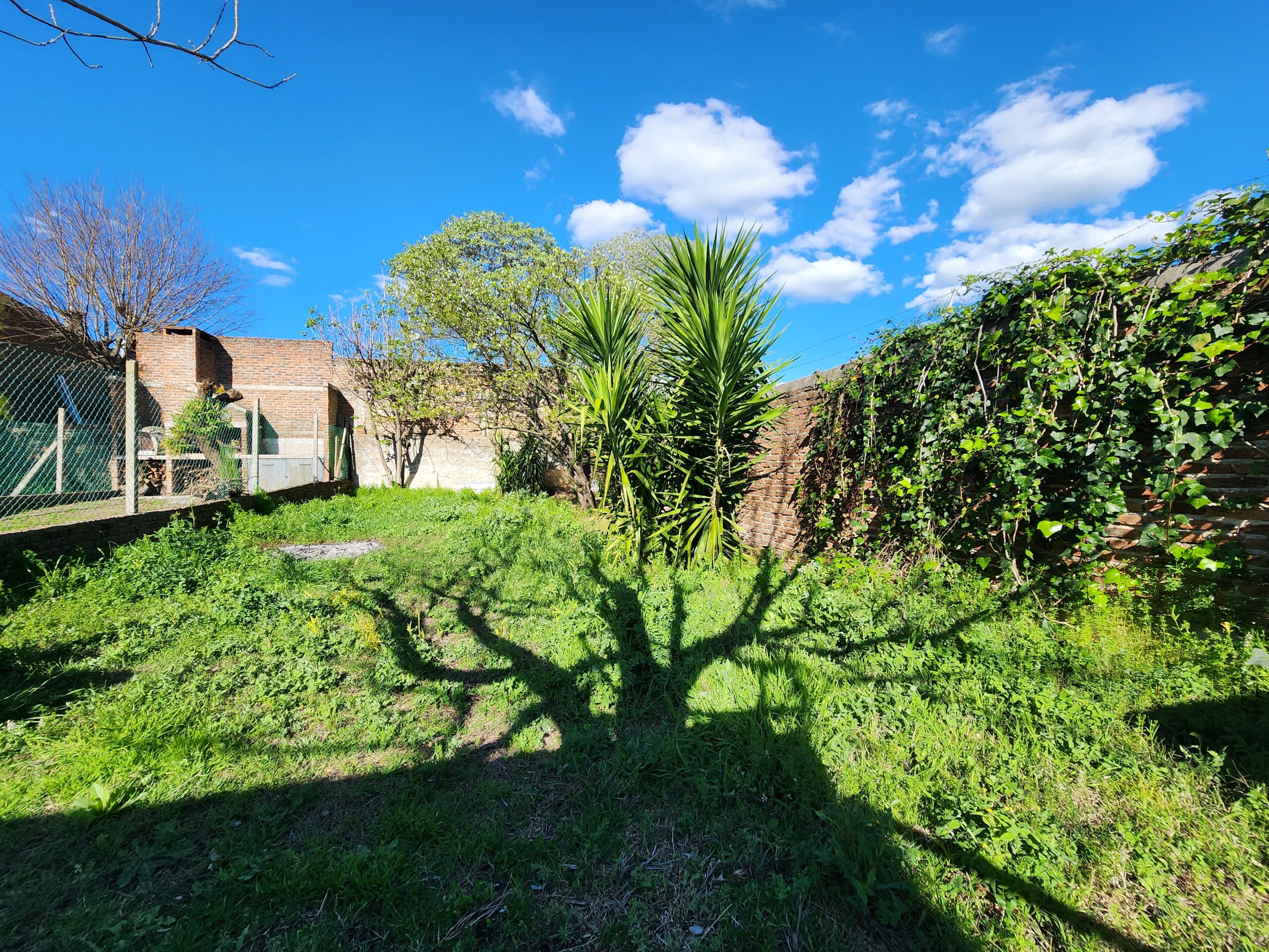 Patio con parrillero y amplio fondo en dos niveles.